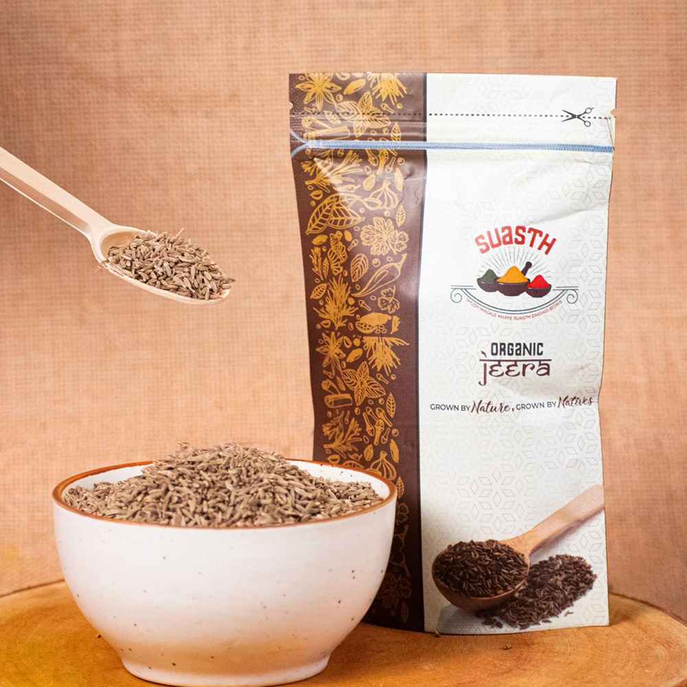Sourced from organically grown cumin seeds, meticulously ground to unlock their full flavor potential. Distinctive warm, earthy aroma with a slightly bitter and peppery taste. A staple spice in Indian cuisine, adding depth and complexity to curries, dals, vegetables, and more. May support gut health (disclaimer: consult a medical professional for confirmation).